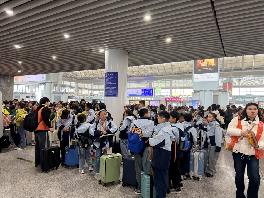 江苏春假首日,南京南站“含娃量”极高 魏宁波 摄
