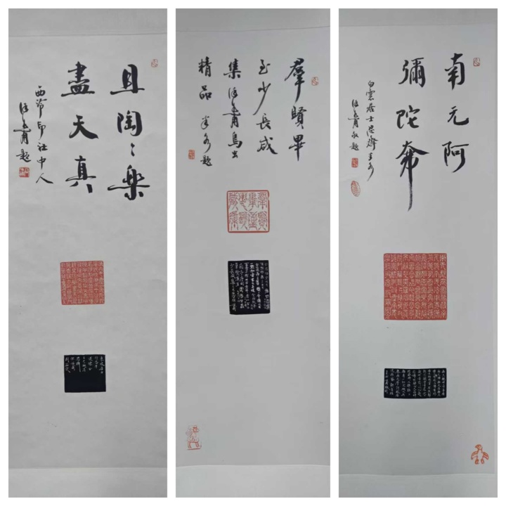 溜达展厅,不雅众能看到朱雀振翅盘旋于字间,灵蛇蜿蜓缠绕笔画,每一方印齐是一首无声的诗,诉说着千年文脉里的放浪与巧念念。这些印记或朱红印油落于素纸,高古介意:或原石胪列刀痕毕现。
