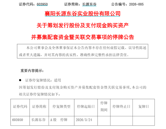 因本次往还尚处于计较阶段,陆续事项尚存不祥情趣,经苦求,长源东谷股票将于3月24日开市起停牌,展望停牌时候不跳动10个往还日。