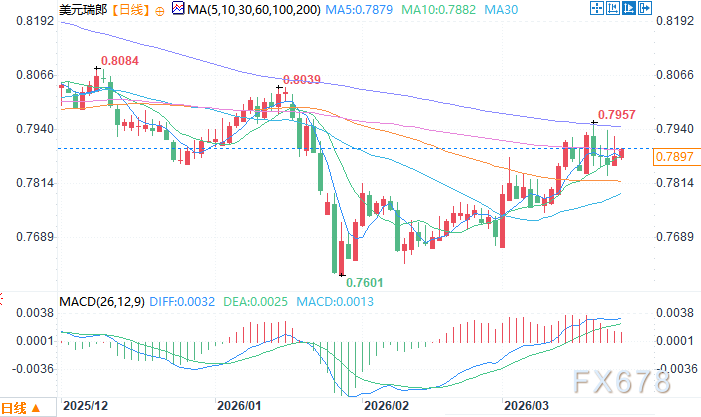 好意思元兑瑞郎日线图 开始:易汇通北京期间3月25日13:37 好意思元兑瑞郎 报 0.7894/95。