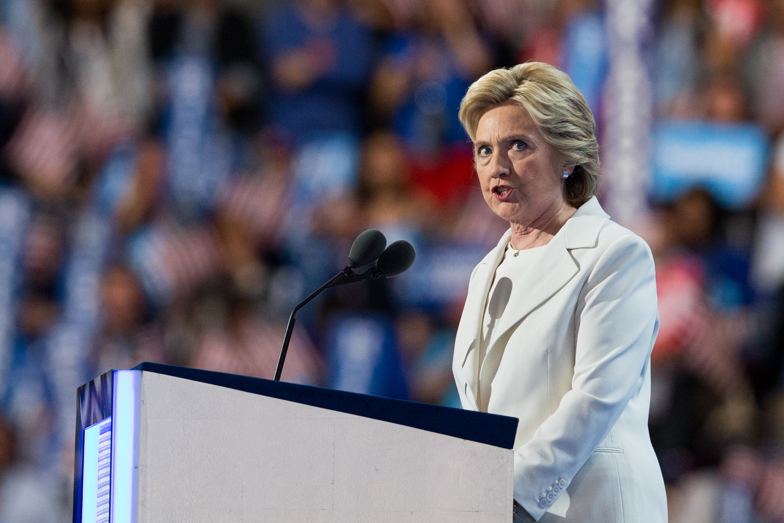 这是希拉里在好意思国宾夕法尼亚州费城举行的民主党世界代表大会上发饰演讲的尊府像片(2016年7月28日摄)。新华社记者李木子摄
