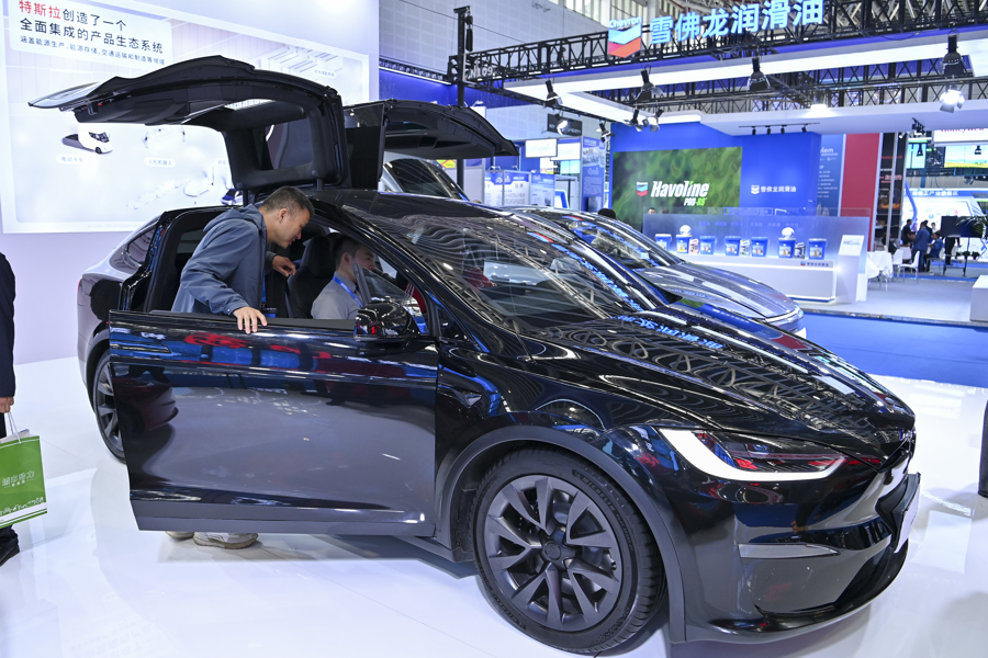 2025寰球新能源汽车大会上不雅看展出的一款新能源汽车。