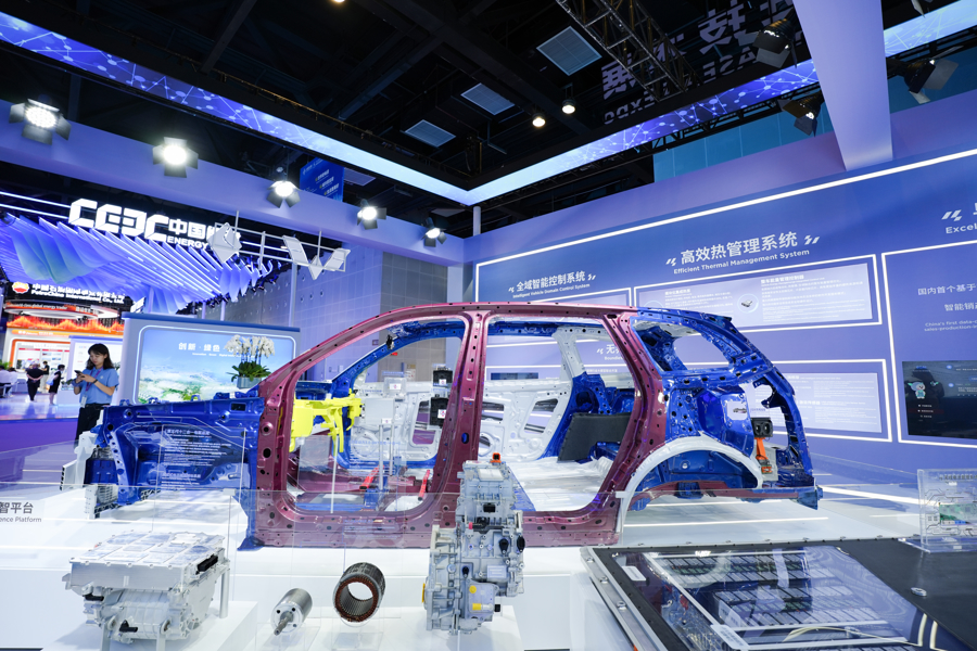 2025年9月在南宁海外会展中心拍摄的电动新能源汽车展台。