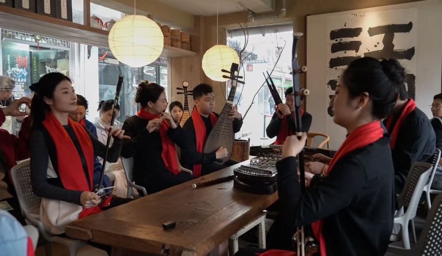上海音乐学院樂龠组合在七宝老街赏心院东说念主文茶肆演奏