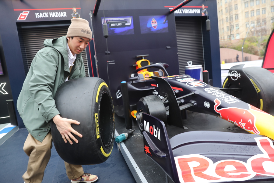 市民和搭客参与了换胎、模拟驾驶等多项互动体验步履。现场设有F1换胎极速挑战、赛车模拟器驾驶体验以及冠军车手装备展示等意旨门径。城市赛车坯房,联接推出F1车队联名商品,互助赛事特调饮品和新款性能车展示,为参与者提供一站式的赛车文化体验。